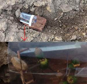 Hra měla ještě další level. Byla to varianta klasického psychologického experimentu: Pokusná osoba se nechá počítat přihrávky v košíkové na videu, kam je ovšem přimíchána gorila. Údajně asi třetina lidí něco tak zdánlivě očividného přehlédne, protože to neodpovídá tomu, co očekávali. A tak jsem kromě kamenů umístil do terénu havarované UFO. První představa zahrnovala detailně propracovaný vrak kosmické lodi vyrobené na 3D tiskárně, včetně narafičené elektroniky a mrtvolek z organické hmoty neznámého původu. Realizace byla značně primitivnější: Na palubě kosmické loďky vyřezané z borové kůry, pod krytem z pet-lahve, ukončila svou cestu trojice ufounků – trojnohých žaludových panáčků. Vizuálně to víc připomínalo nepodařený záběr z filmu o medvídkovi Kukym než Akta X.