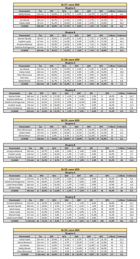 Václav Kalaš2025, Expedice, Meteory, Naše činnost, Pozorování, Vizuální pozorování