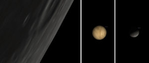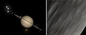 Třetí planeta aktuálního seskupení – Saturn – je jediná z rodiny vnějších oběžnic. Od chvíle, kdy si obří planeta prošla optimální pozicí, kdy je nejlépe pozorovatelná, tzv. opozicí se Sluncem, uběhla už řada měsíců (21. září 2025). Objekt s nápadným prstencem však nepodléhá tak výrazným změnám zdánlivé velikosti jako Merkur či Venuše, a proto i pět měsíců po opozici je stále relativně velký. Tím, co u něho ale právě nyní budí největší pozornost, je překlopení soustavy prstenců. Po téměř dvou desetiletích nám Saturn, celý loňský rok, nabízel pohled pouze na velice úzký průmět své největší ozdoby a až letos si opět začneme užívat stále hezčích pohledů na jižní stranu prstenců, tedy vzhledem k planetě z podhledu.