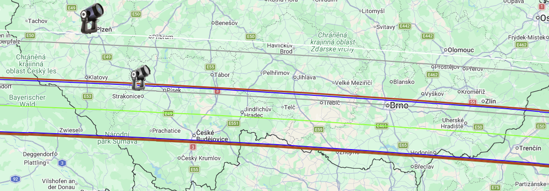 A kam svůj evscope (nebo jiný dalekohled) postavit? Na to nejlépe odpoví připojená mapa. Centrální linie zákrytu vstoupí na naše území z Německa poblíž Železné Rudy ve 20:06:07 UT a opustí ho po 13 sekundách (20:06:20 UT) poblíž Starého Hrozenkova. Předpověď zdá se být poměrně přesná, modré čáry vymezující okraje pásu a ty červené, vyjadřující velikost chyby předpovědi 1-sigma, téměř splývají. Úkaz má i mnoho dalších výhod, odehraje se v pohodlné výšce 38° nad ZJZ obzorem (azimut 248°) se Sluncem i Měsícem hluboko pod obzorem. Ani majitelé jiných dalekohledů by neměli mít s vyhledáním pole problém. Stačí ho namířit na alfu souhvězdí Býka Aldebaran a popojet v rektascenzi o 20 minut na východ.
