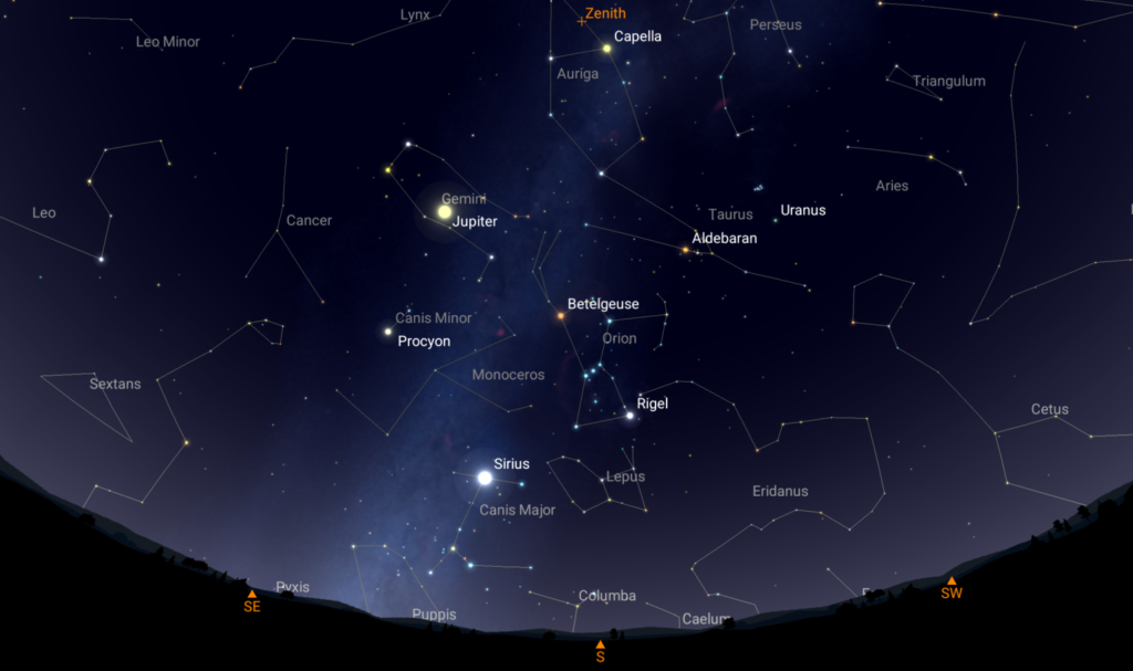 I tento měsíc nám nabídne úchvatný pohled na krásu (nejen) zimní oblohy. Čekají na nás stále dvě velké planety a krásné „deep sky“ objekty jako jsou galaxie v Andromedě, Velká mlhovina v Orionu, nebo třeba otevřená hvězdokupa Plejády.